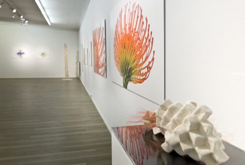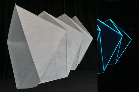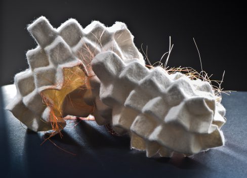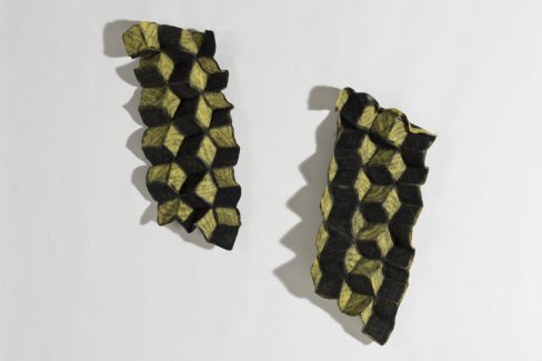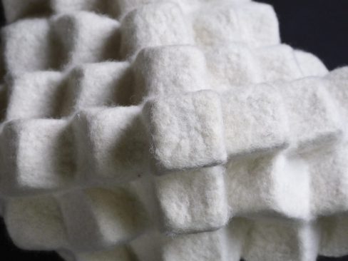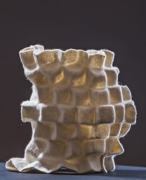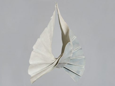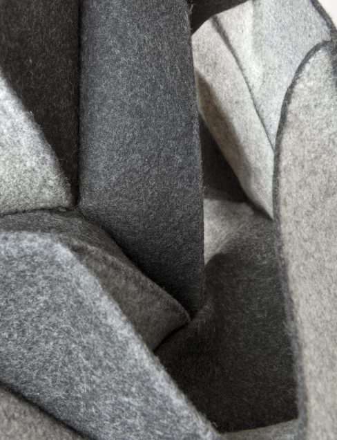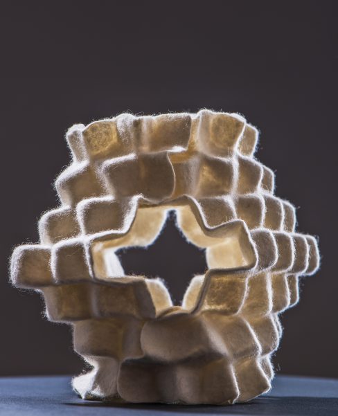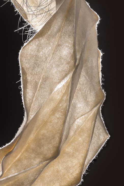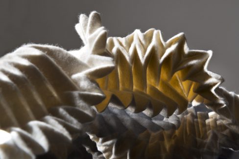 Seit Jahren beschäftige ich mich mit dem Generieren von Räumen durch Faltungen und ähnlichen Konstruktionen, die ich in textilen Materialien und Papieren umsetze. Durch einen Falz werden geometrische Formen so miteinander verbunden, dass sie sowohl einen Raum erzeugen als auch den so entstandenen Innen- und Außenraum miteinander verbinden bzw. voneinander trennen. Die entstandenen Räume sind beweglich. Sie können verdreht, verdichtet und zusammengefaltet oder geöffnet werden und ermöglichen so unterschiedliche Ansichten, Empfindungen und Gefühle. Die Objekte Phacelia und Protea sind für die Ausstellungen „Dimensionalitäten“2015 und „Perspektivenwechsel“ im frauen museum wiesbaden 2019 als Referenz zu Makroaufnahmen der Künstlerinnen Erika Glanzer und Tina Bender entstanden.